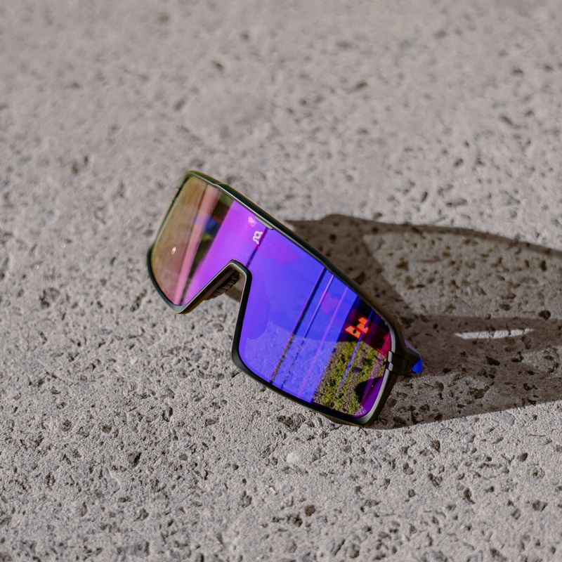 Policarbonato con protección UV400. Resistente a rayaduras, impactos, salpicaduras, viento y arena. Su curvatura proporciona un campo visual amplio y nítido